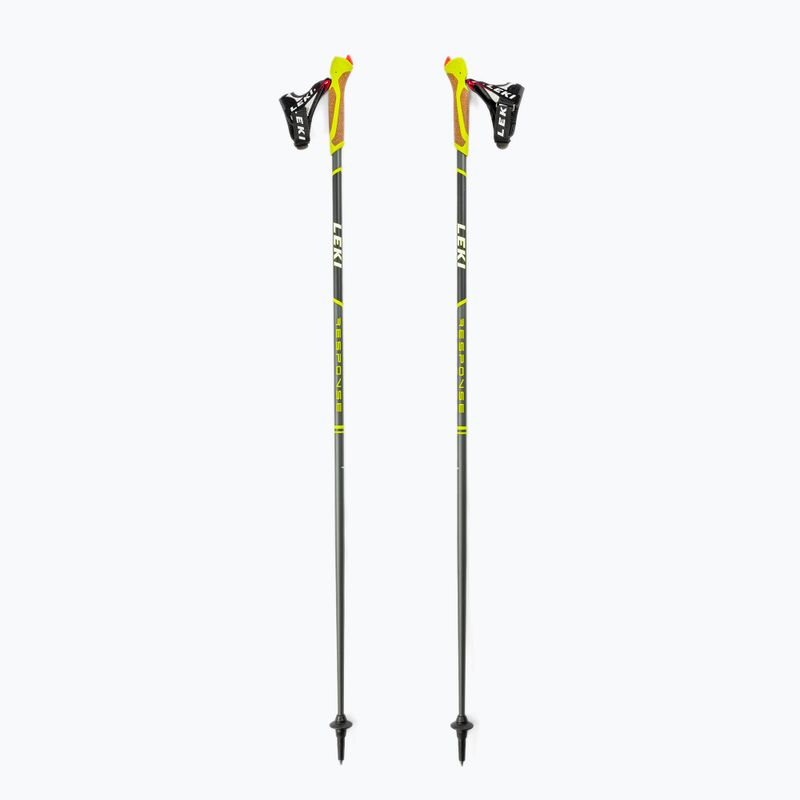 Palice Leki Response sú hliníkový model tvrdený elektrochemickým farbením. Odolný a pružný hrot, gumové krytky, ergonomická rukoväť a systém výmeny košíka zaručujú pohodlné používanie.