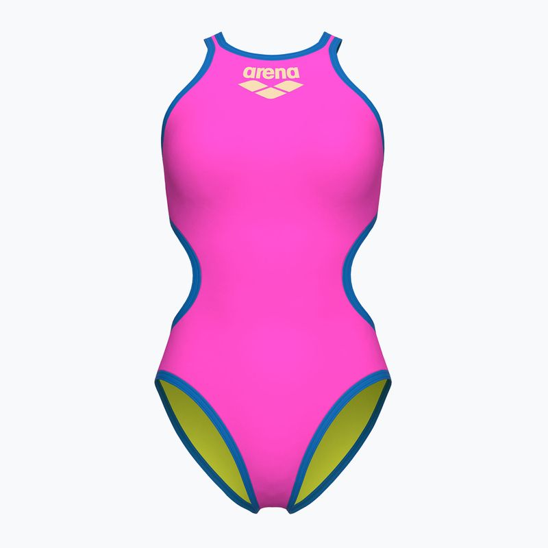Dámske jednodielne plavky arena One Biglogo One Piece shocking pink/blue river (001198)