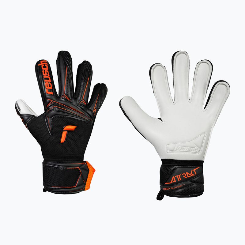 Detské brankárske rukavice Reusch Attrakt Advance Finger Support Junior black/shocking orange (5672210-7783)
