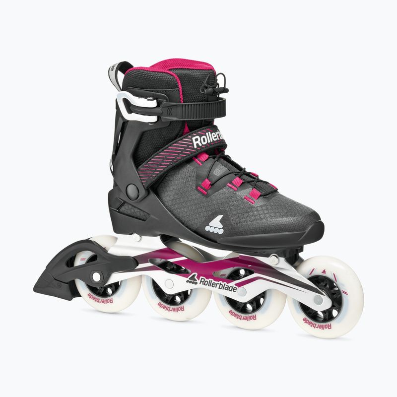 Ženské kolieskové korčule Rollerblade Macroblade 90 W predstavujú ďalší krok vo vývoji zručností. Konštrukcia s vyšším zvrškom zvyšuje bočnú oporu, systém Footboard Sizer umožňuje prispôsobiť vnútro, a kolieska 90 mm 85A spájajú kontrolu s vyššou rýchlosťou jazdy.